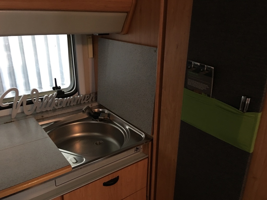 Eingangstüren, Gasflasche (5-20kg), TV/DVD incl. einer mobilen SAT-Anlage, Fahrradträger, Frischwassertank von außen befüllbar, komplette Küchenausstattung (Geschirr / Besteck usw.)
